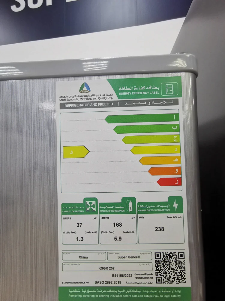 ثلاجة سوبر جنرال سعة 205 لتر 7.2 قدم KSGR257