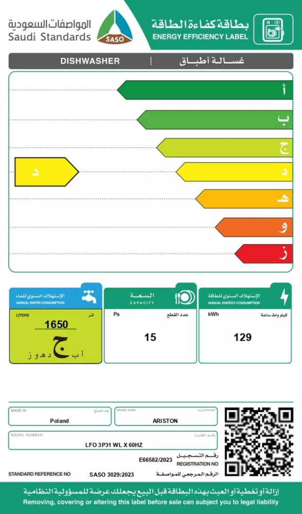 • مستوى كفاءة الطاقة: أ ++